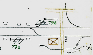 ancillary buildings between the freight house and the water tank and the rectangular building that was directly across from the water tank.